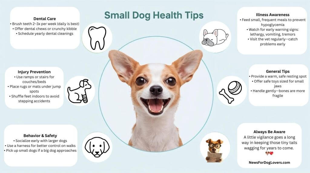 Small dogs may look delicate, but with the right care they can live long, healthy, and spirited lives. Pay extra attention to dental health, protect them from injuries, and monitor for illness more diligently than you might with a larger dog.